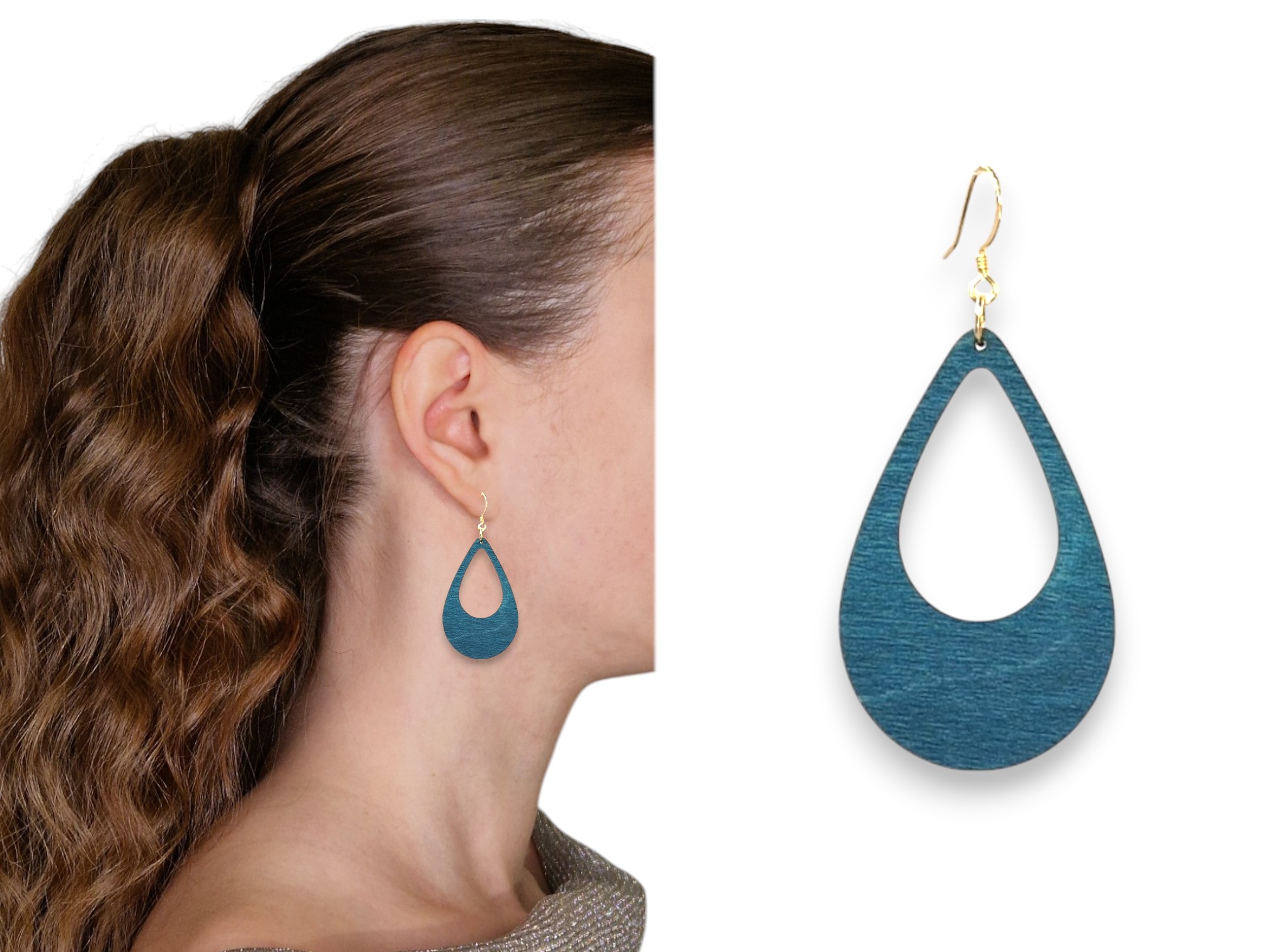 Materiaali: Koivu, tammi tai akryyli, koukkukiinnitys, korujen teräsosat korkealaatuista ruostumatonta terästä, korujen mukana tulee silikonitulpat.
