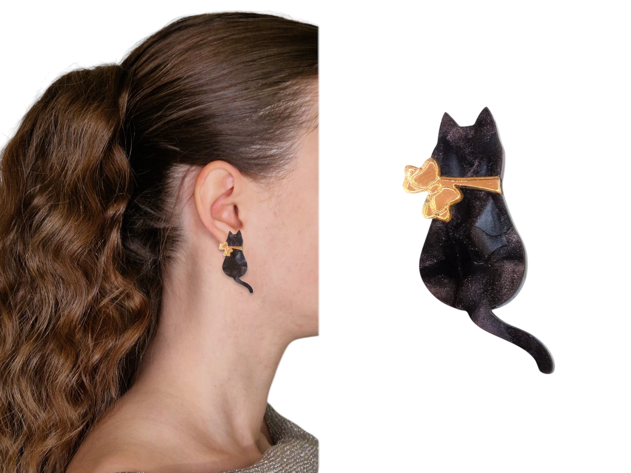 Kissa rusetilla korvakorut kaikille kissojen ystäville.