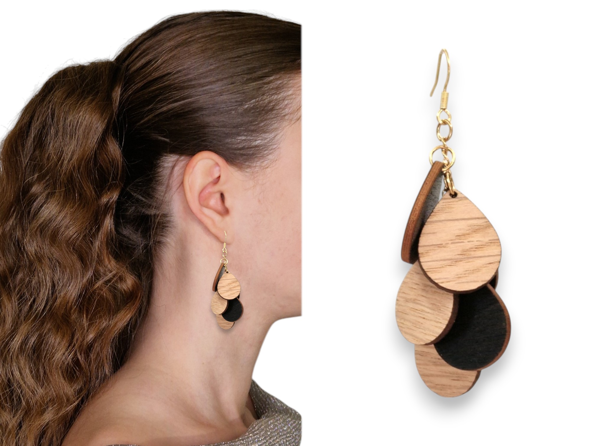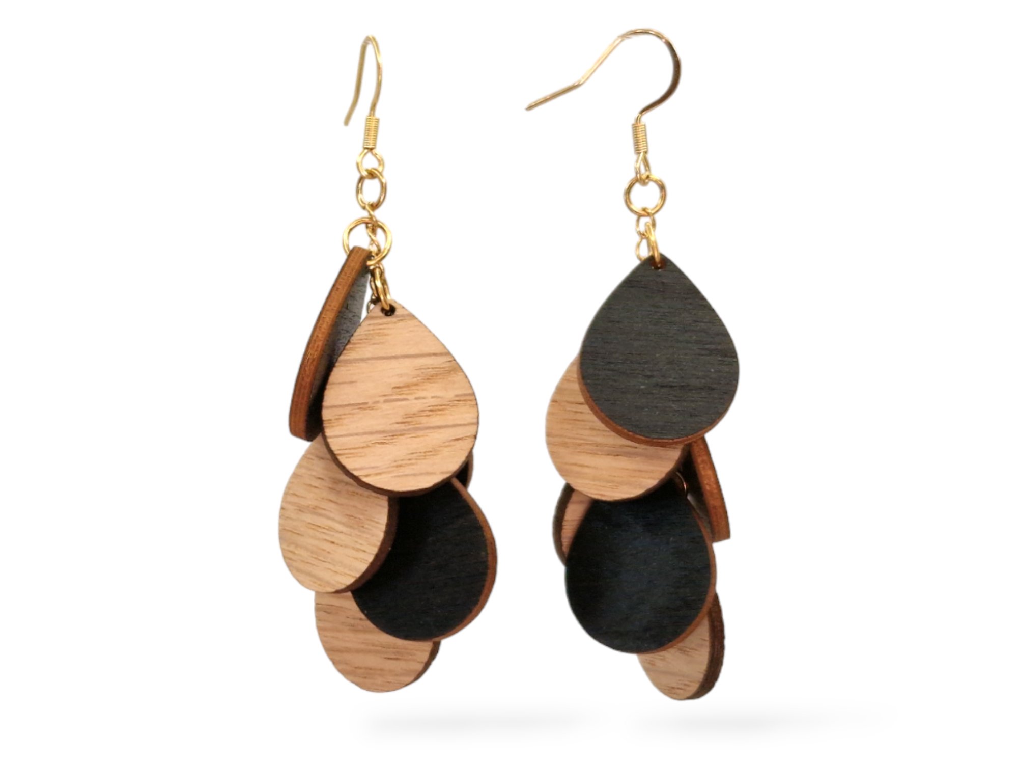 Materiaali: Koivu tai tammi, koukut kirurginterästä, korujen metalliosat korkealaatuista ruostumatonta kirurginterästä, korujen mukana tulee silikonitulpat.