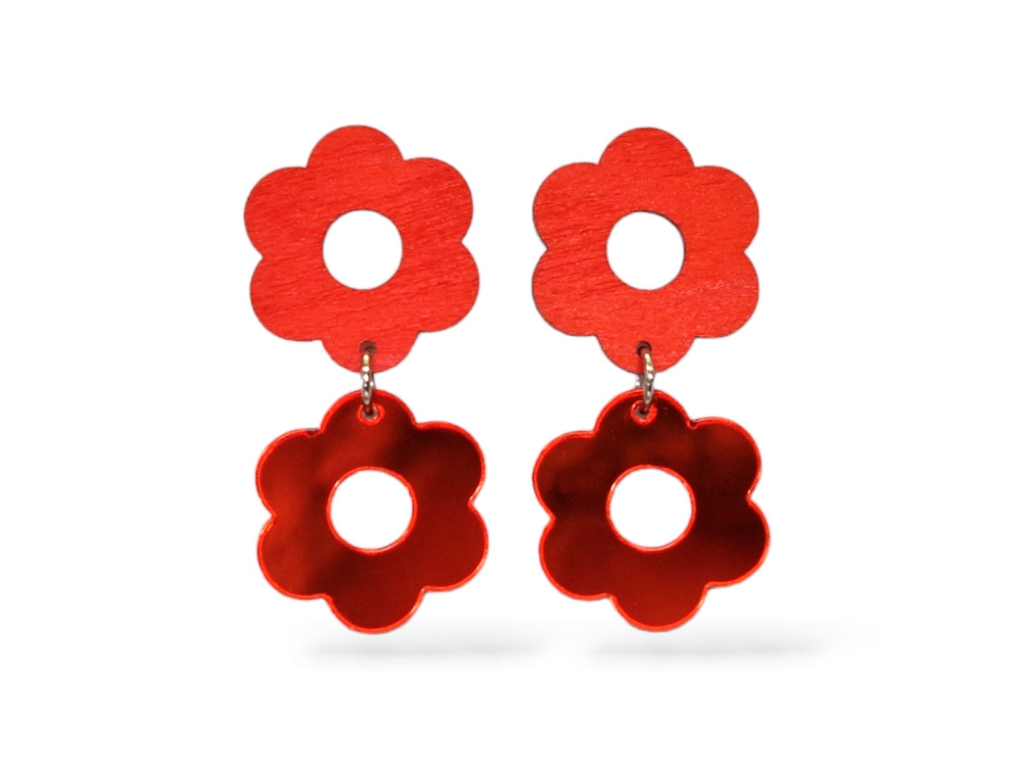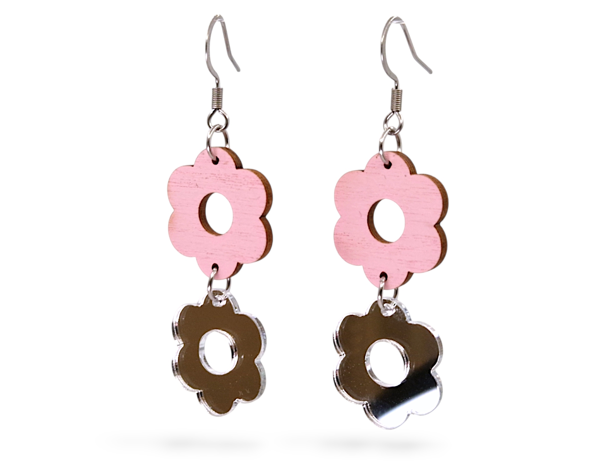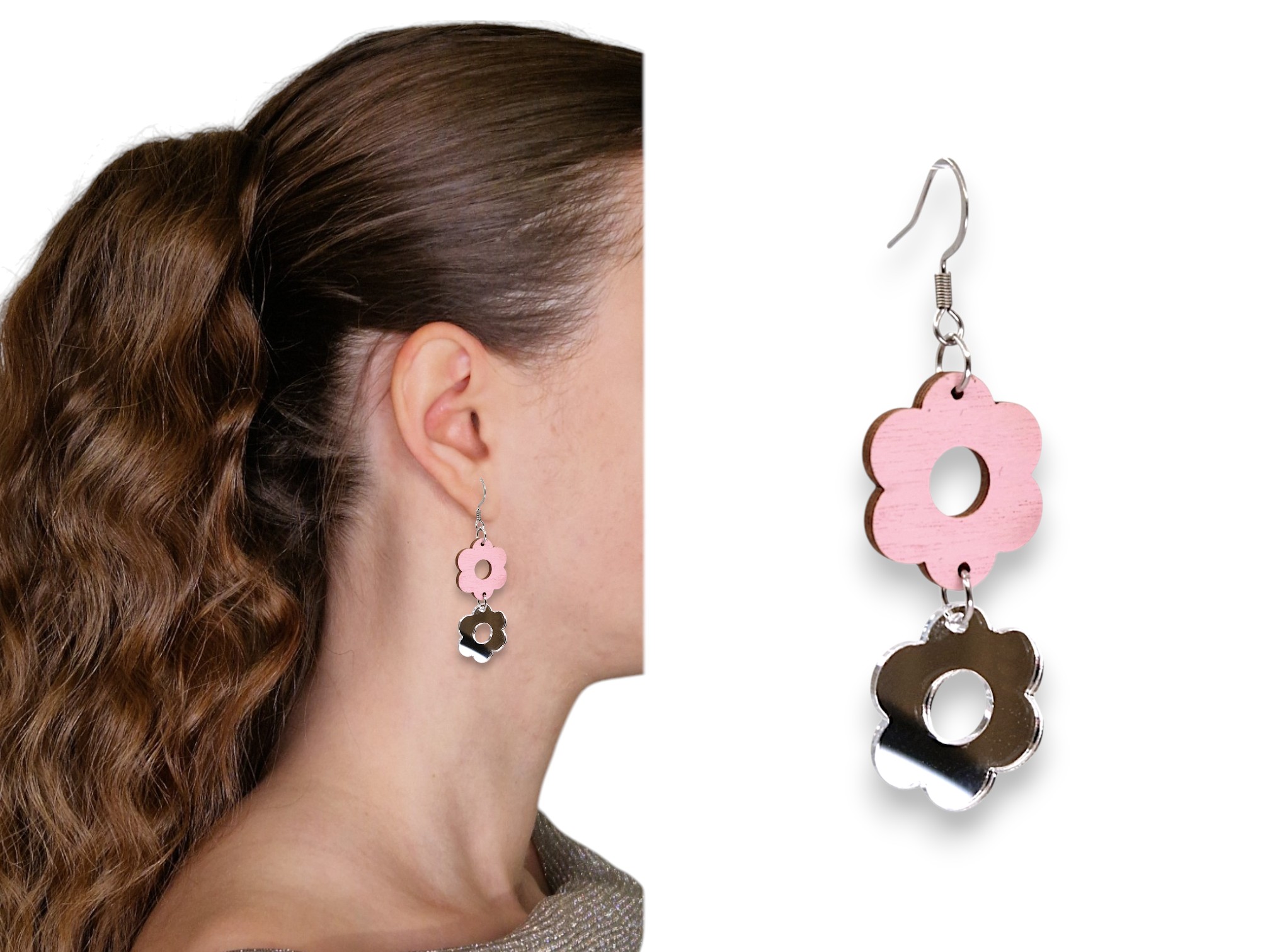 Flora korvakorut ovat upeat kukka korvakorut, jotka ovat tyylikkäät moneen asuun sopivat katseenvangitsijat. Flora korvakorujen ylin osa on puuta ja alempiosa on peiliakryylia. Kahden eri materiaalin yhdistelmä antaa korulle elegantin säväyksen. Peiliakryyli heijastaa valoa kauniisti.