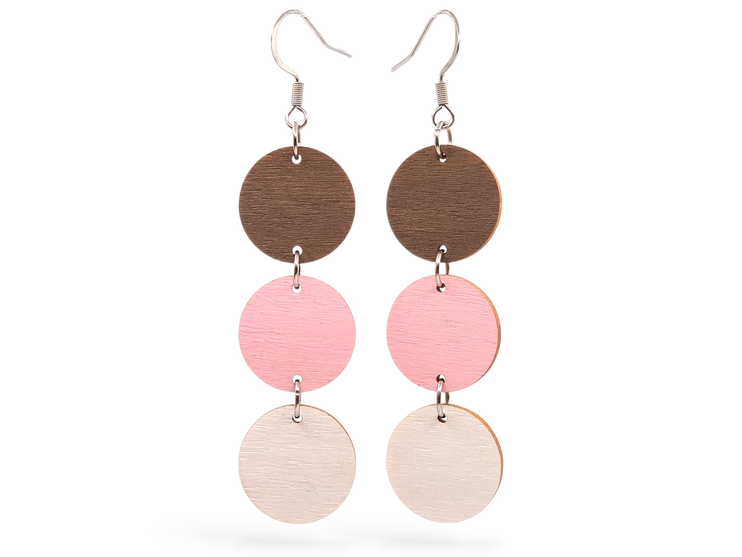 Materiaali: Tammi,koivu tai akryyli. Koukut kirurginterästä, korujen teräsosat korkealaatuista ruostumatonta terästä, korujen mukana tulee silikonitulpat.