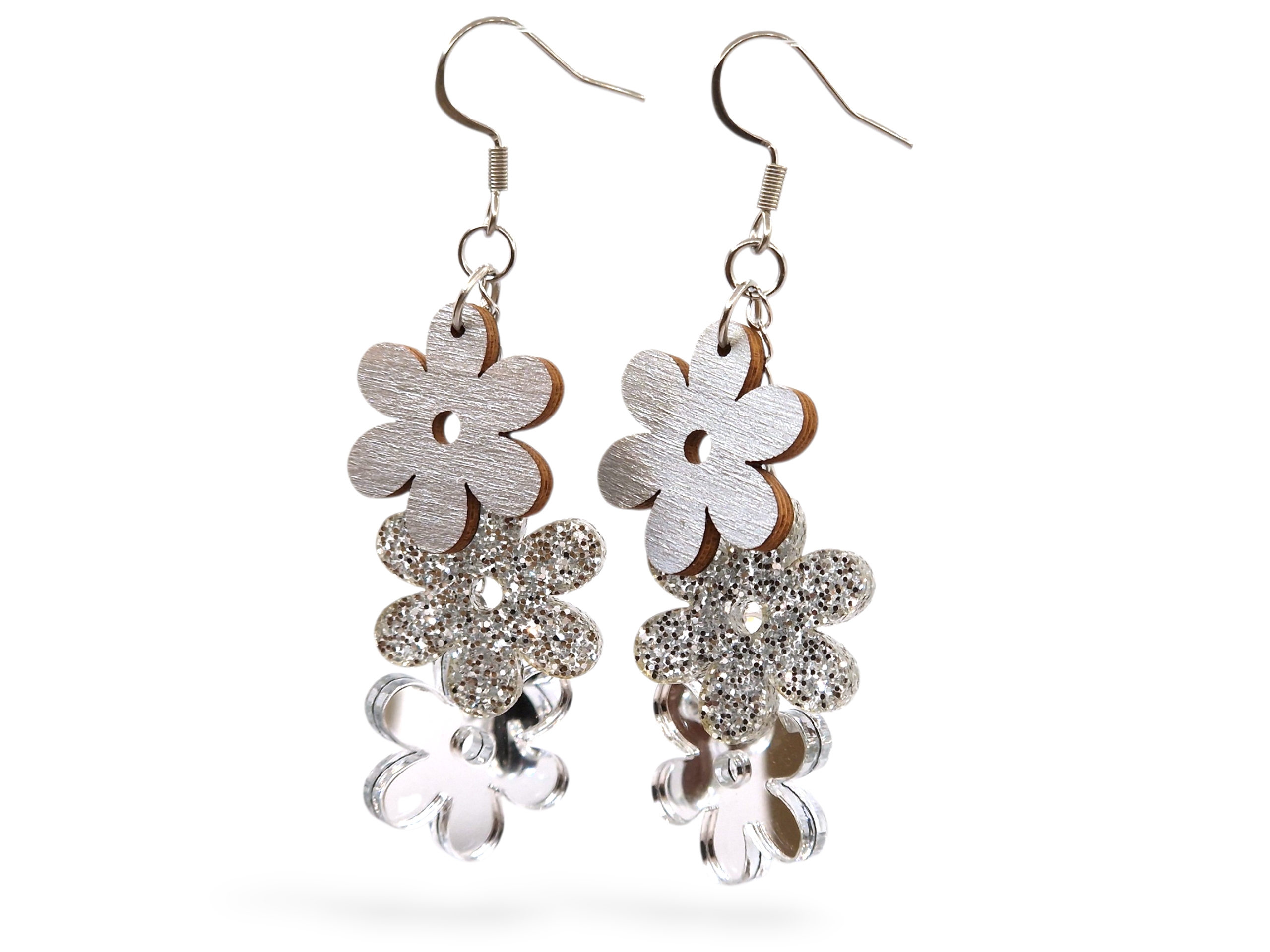 Materiaali: Koivu, tammi tai akryyli. Koukut kirurginterästä, korujen metalliosat korkealaatuista ruostumatonta kirurginterästä. Koukkujen mukana tulee silikonitulpat.